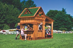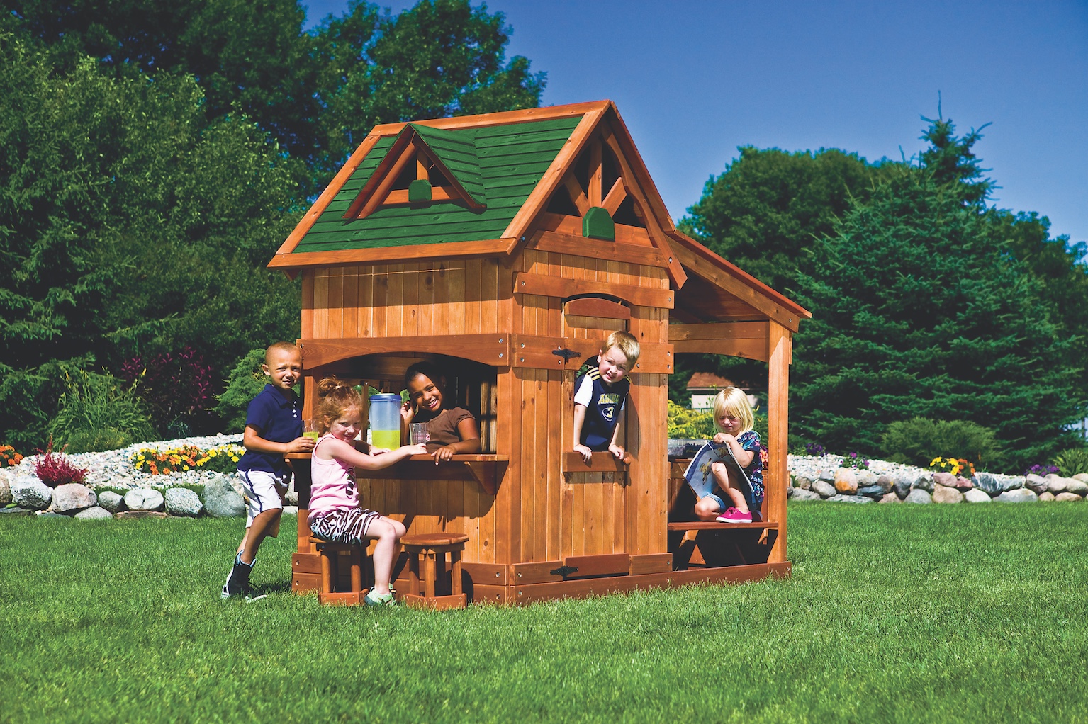 Bellissima casetta di legno! Una limonata stand con due sgabelli e un zona veranda ombreggiata con una finestra che serve al tavolo da pri picnic. Il tavolo da picnic è spostabile. Questo teatro è il sogno di ogni pa bambino come un covo, clubhouse, giocare a nascondino e ogni tipo l’i di gioco immaginativo… un vero sogno!